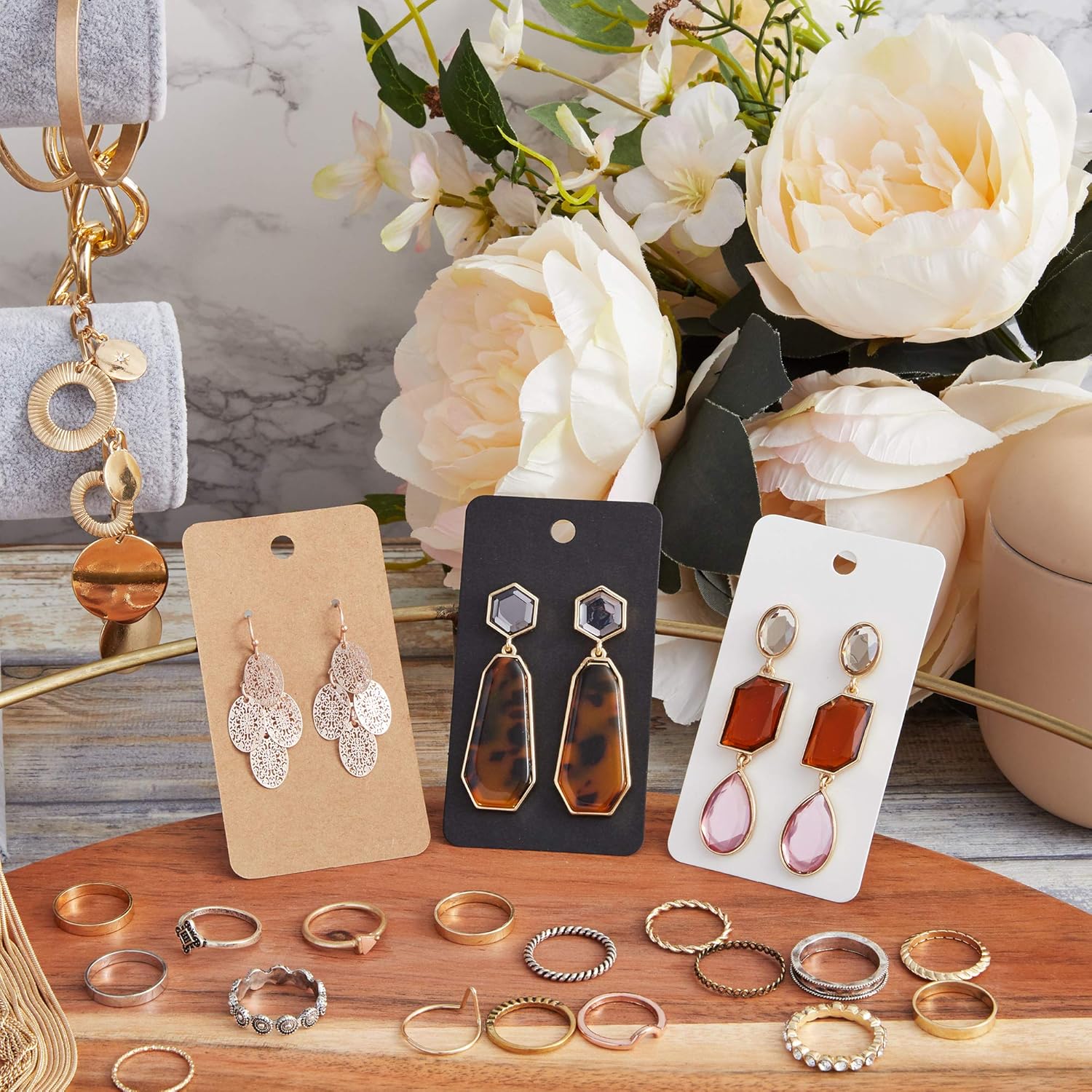 Make your earring cards even more attractive by adding other decorative details such as stamps, stickers, twine, etc.